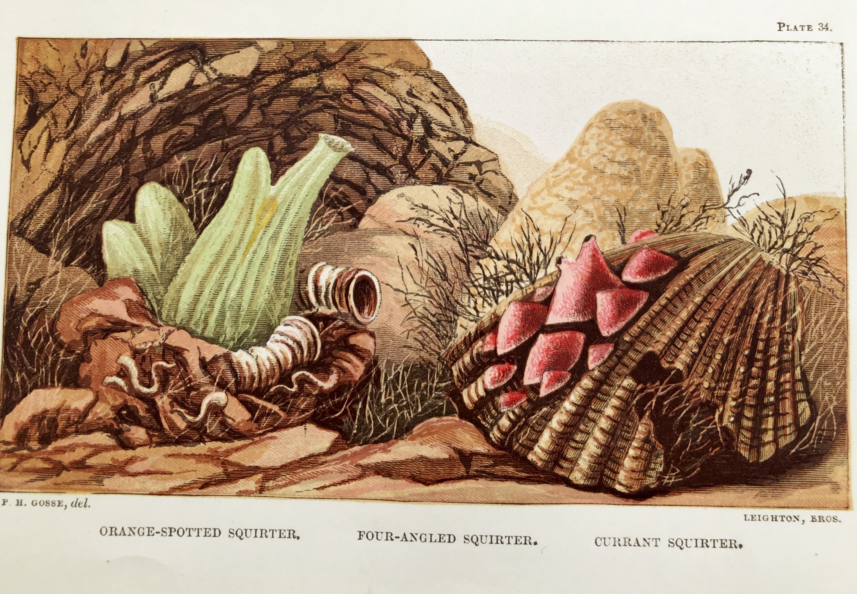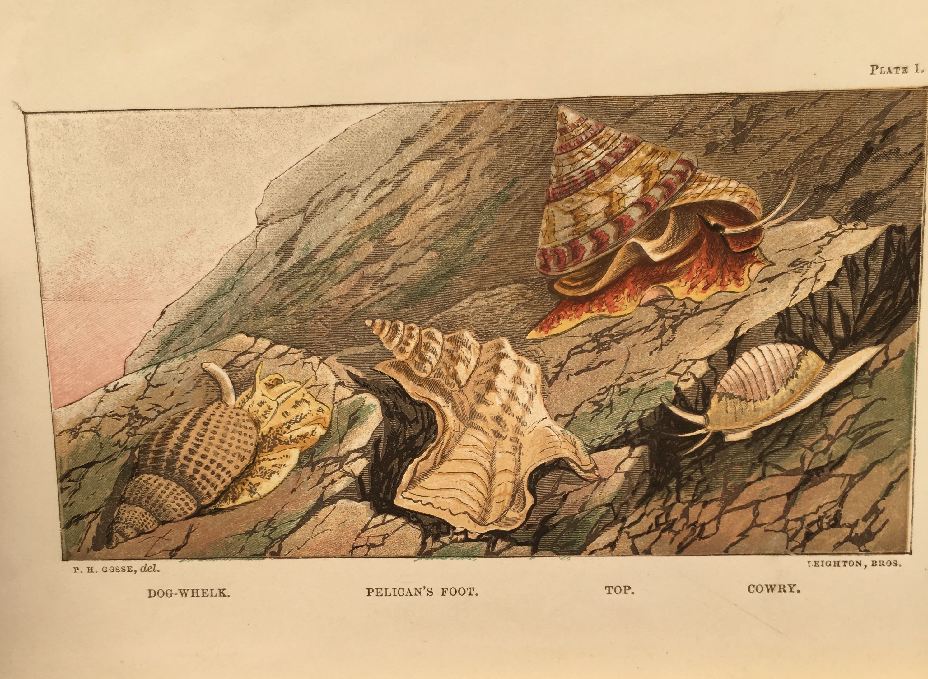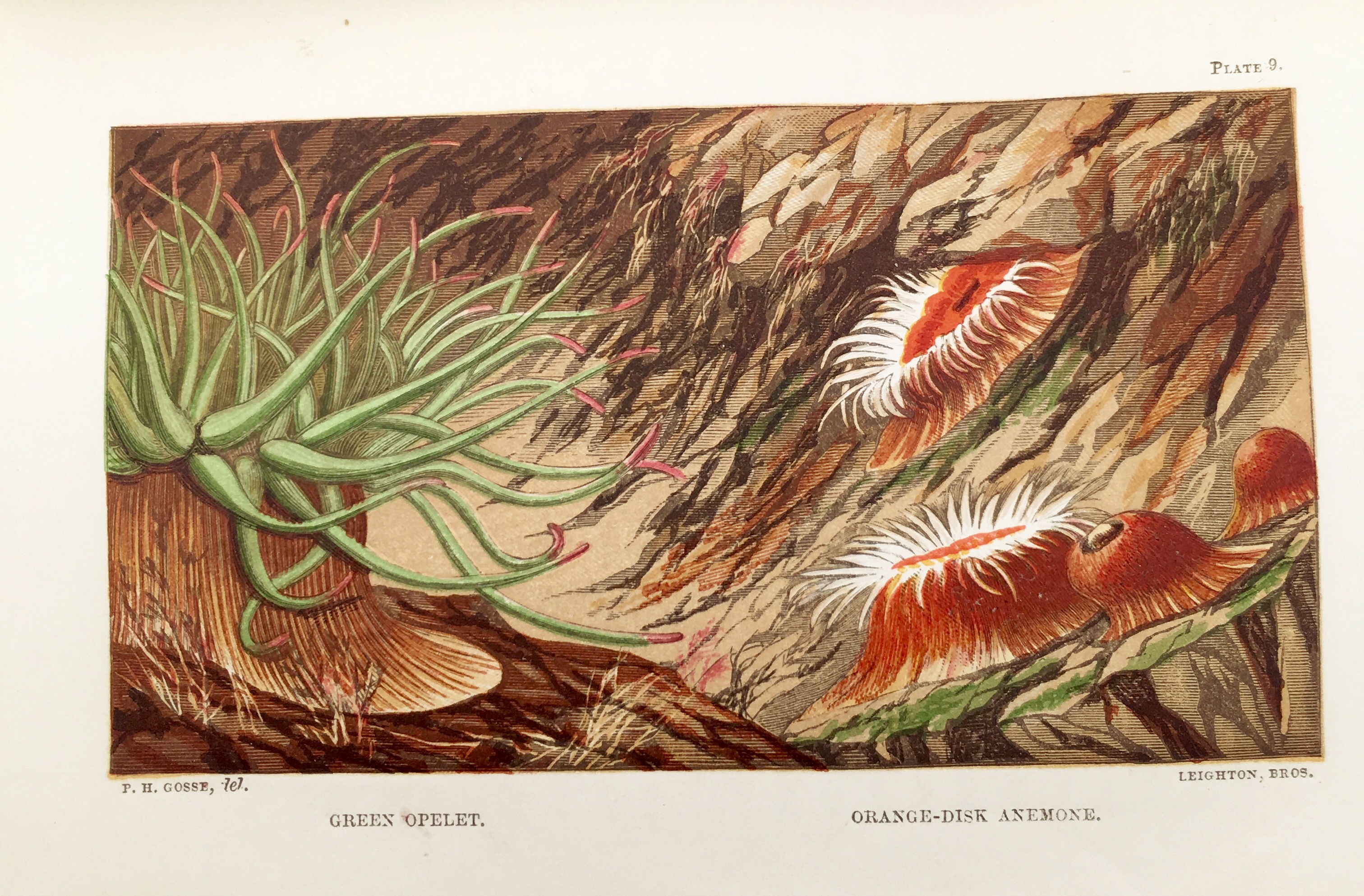 A Year At The Shore (1865) by Philip Henry Gosse (the naturalist and populariser of the aquarium) contained some beautiful lithographs of marine life. The colour of Gosse’s illustrations were known to provoke not only awe but often disbelief. – His son Edmund Gosse recalls that several reviewers questioned the plates in Gosse’s work and ‘made a positive sensation [of The Aquarium (1856) which] marked an epoch in the annals of English book illustration’.